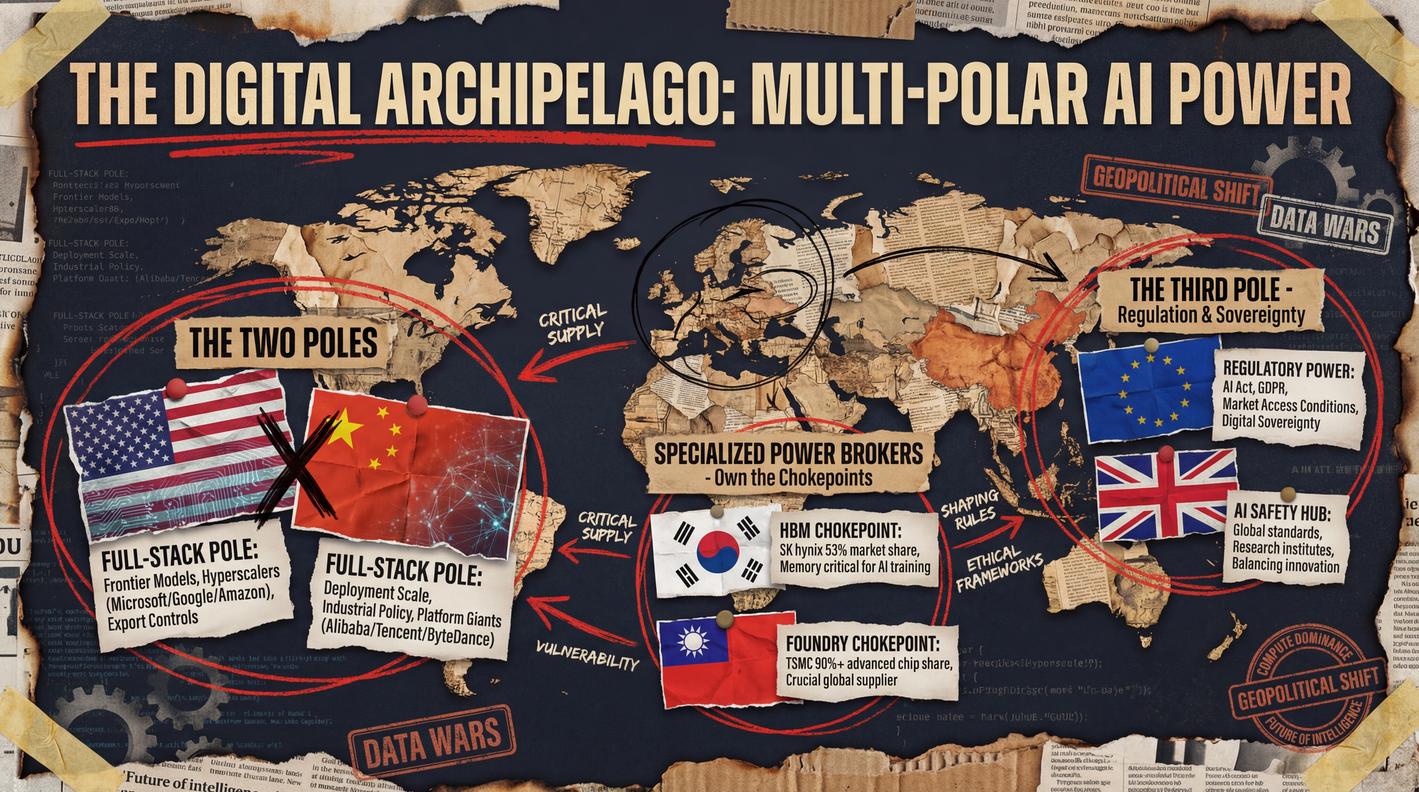 As the US and China harden into rival AI ecosystems, the world is reorganizing into what I call the Digital Archipelago—a multi-polar landscape where (often discussed as sovereign AI) becomes a strategic objective for nations beyond just the two superpowers.