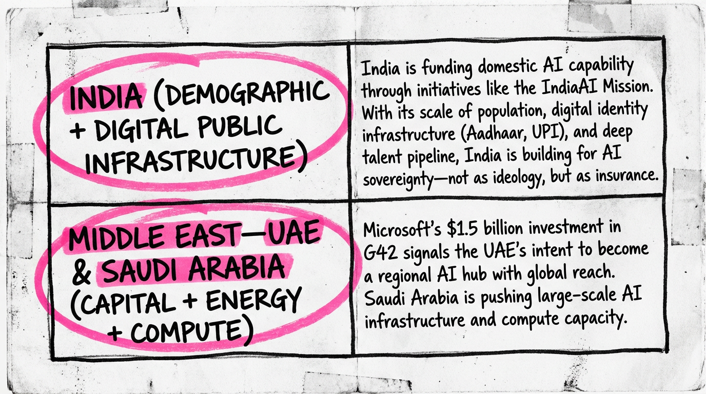 What I'm watching: These states are trying to convert energy wealth and sovereign capital into compute sovereignty. This isn't about building the flashiest models—it's about owning enough of the stack that they can't be shut out by foreign political decisions.