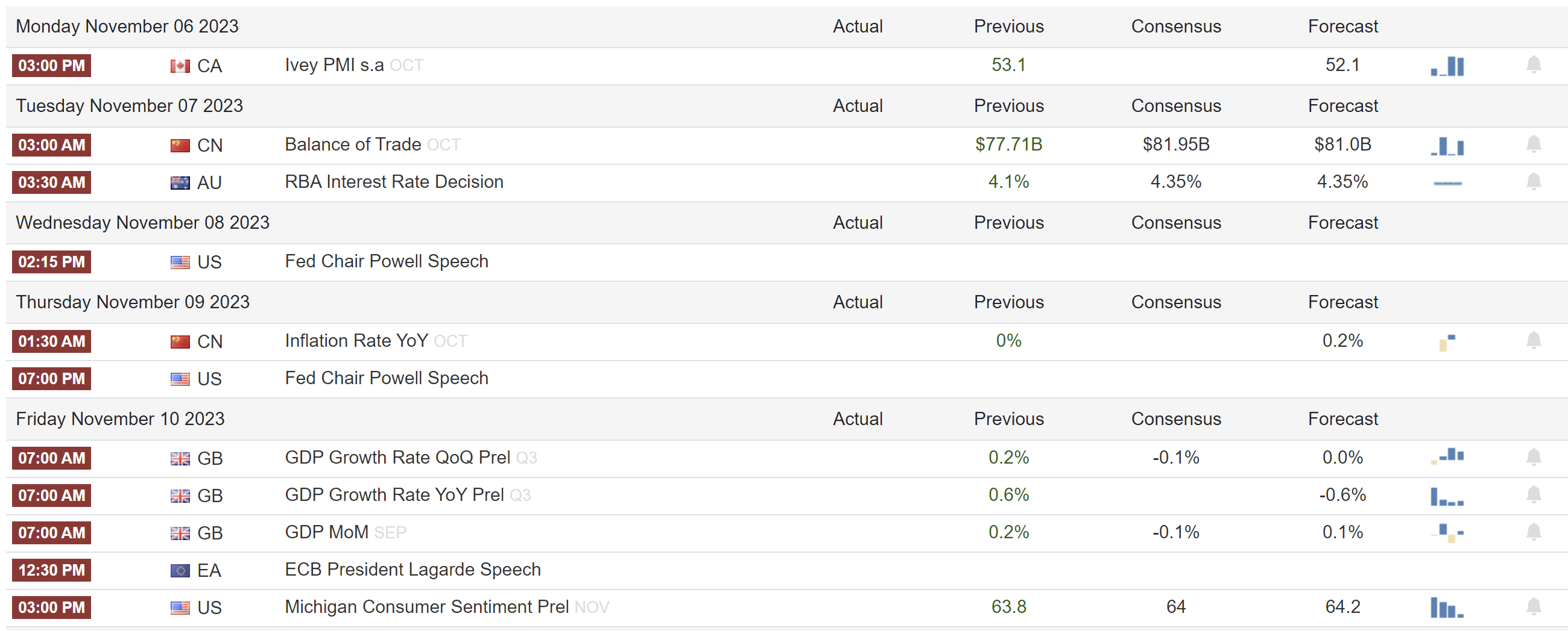 - Eurozone Inflation and Employment: The eurozone annual inflation rate dropped significantly to 2.9% in October. The eurozone’s GDP contracted slightly by 0.1% in Q3, with Germany mirroring this contraction. Germany’s jobless rate increased to a higher-than-expected 5.8% in October.