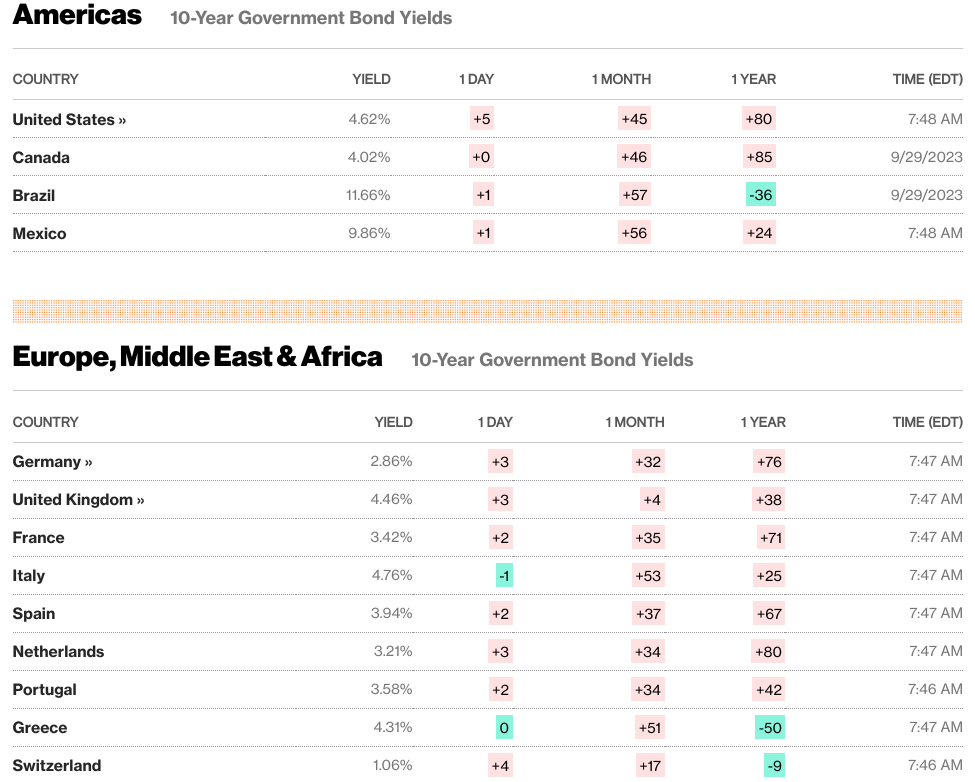 🏈Bottom line: European stock markets declined amid concerns about higher interest rates and a weakening Chinese economy, with major indices posting losses; European government bond yields rose, and Eurozone inflation eased in September, while the UK's GDP growth was revised upward, but its property market slowdown continued.
