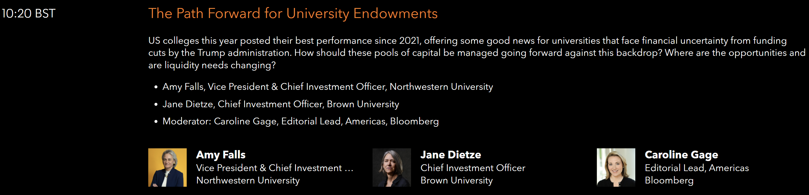 Amy Falls, Vice President & Chief Investment Officer, Northwestern University and Jane Dietze, Chief Investment Officer, Brown University discuss the path forward for University endowments with Bloomberg's Caroline Gage.