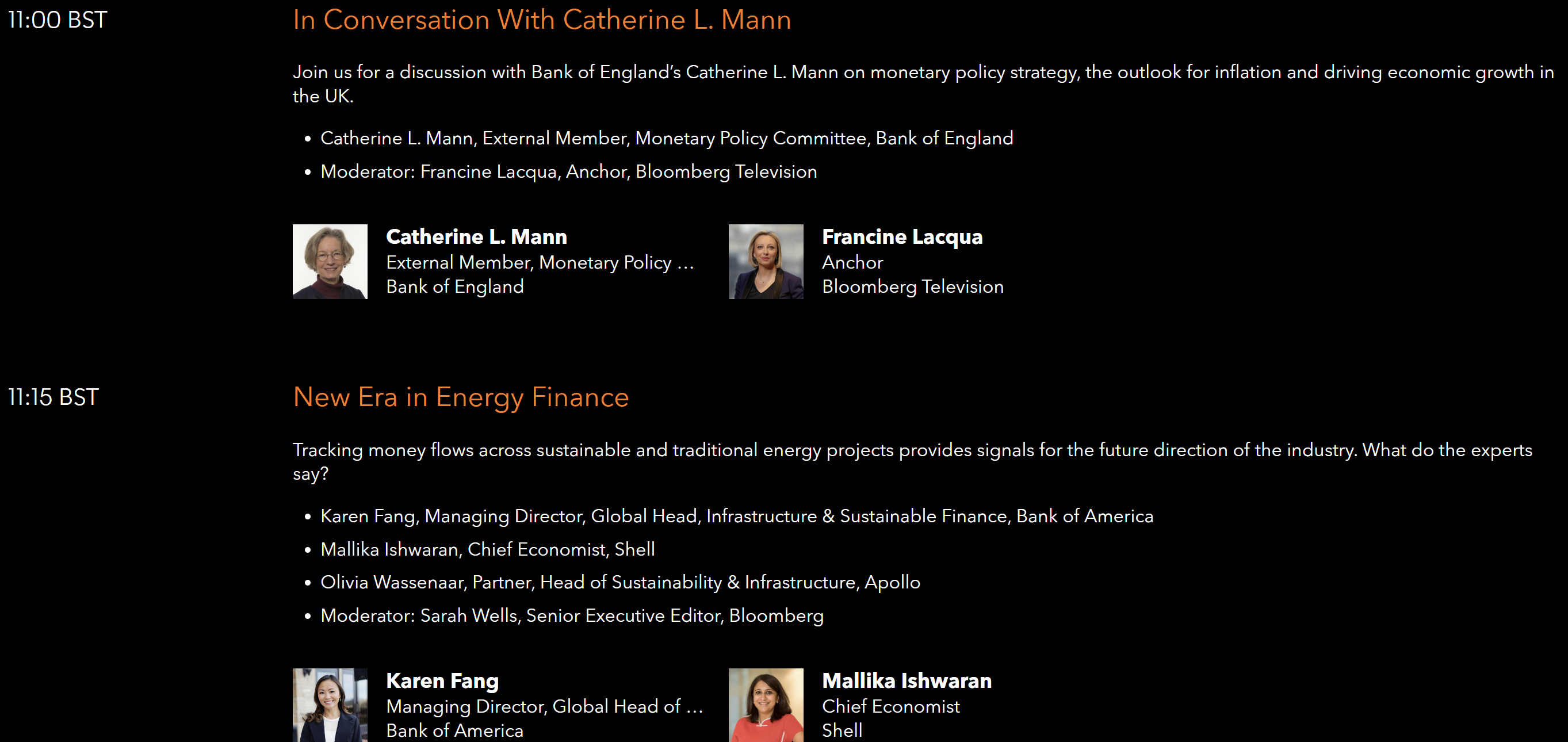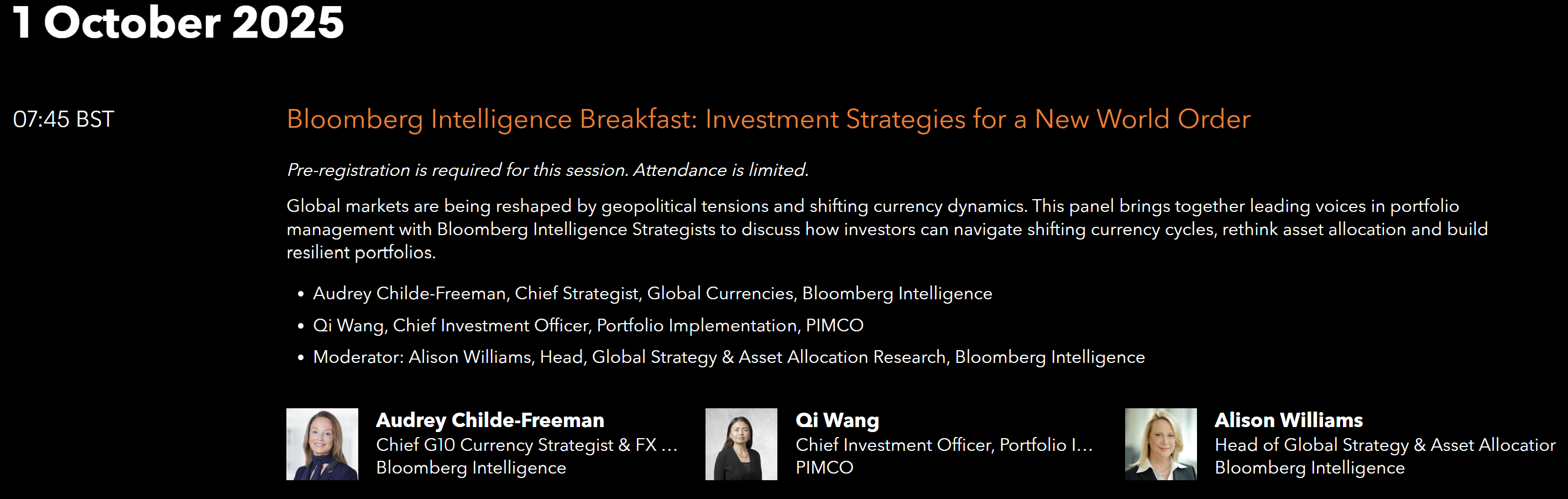 Markets | Leadership] Bloomberg Women, Money & Power 2025 event in London (Oct 1, 2025)