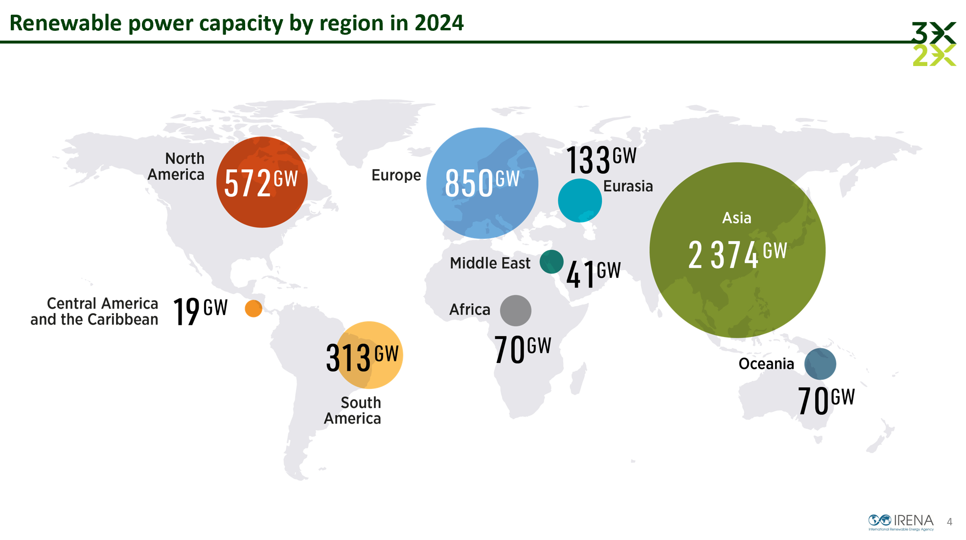 Africa | 4.7 GW | Represents only 1.6% of the global total; requires a quadrupling of capacity by 2030. |