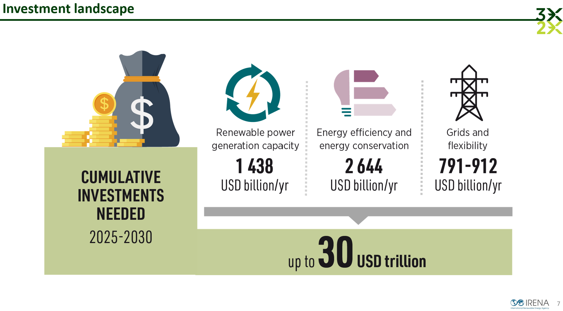 - Investment gap: ≈ USD 2.8 trillion cumulative shortfall by 2030