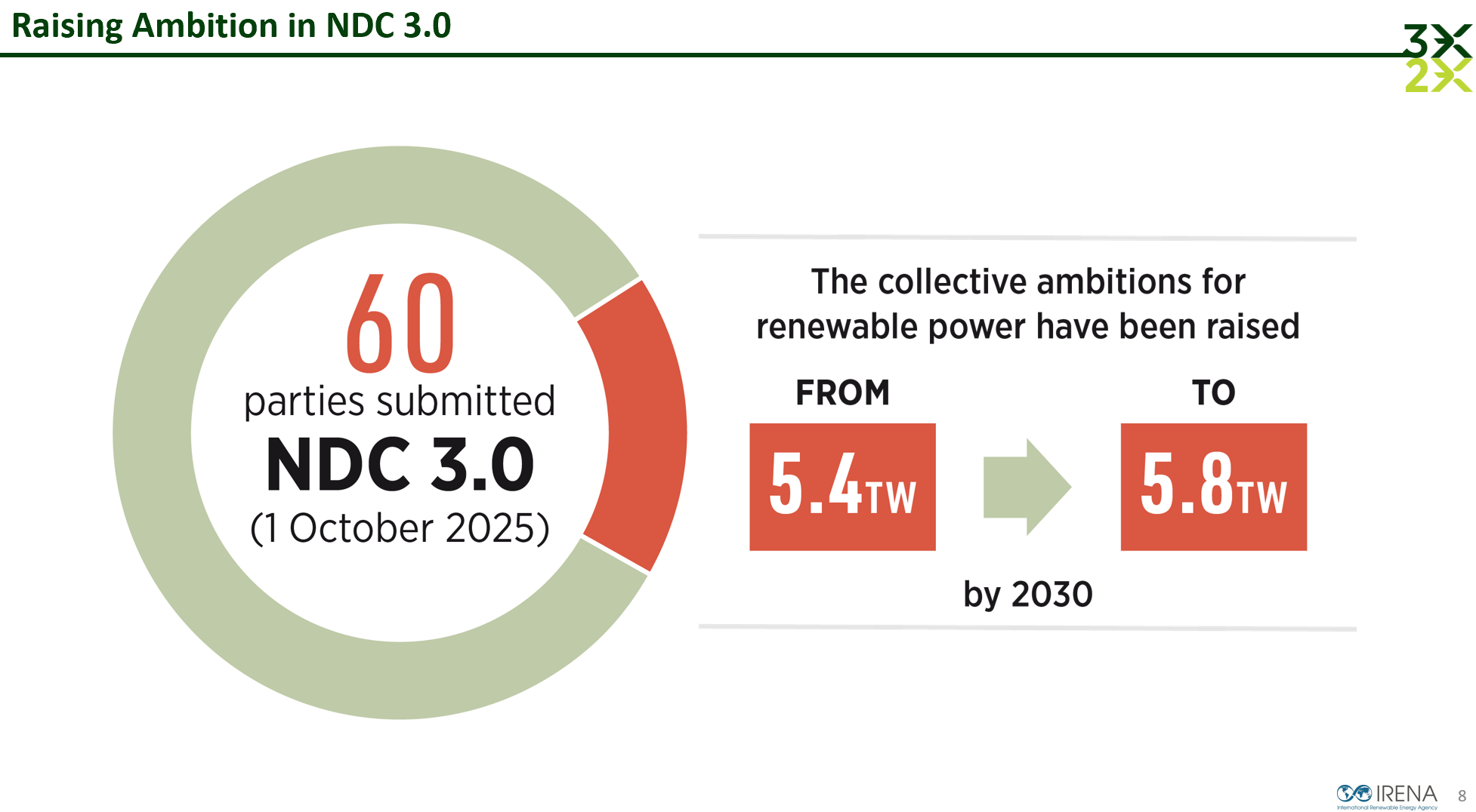 - Formal commitments in official Nationally Determined Contributions (NDCs) submitted to the UNFCCC are even less ambitious, targeting only 5.8 TW.